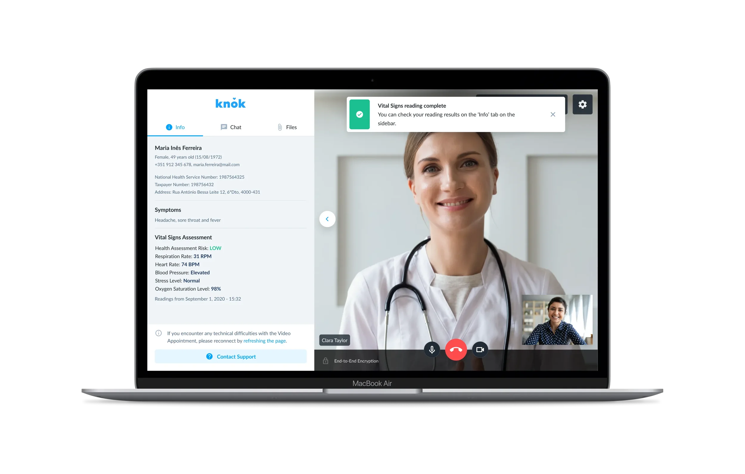 Traditional vital signs monitoring required physical medical equipment, limiting remote healthcare capabilities. Healthcare providers needed accurate, non-contact methods to assess patient vital signs during video consultations, especially crucial during the pandemic when physical contact was minimized.
